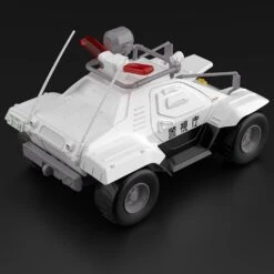 The compact Type 98 special command vehicle from “Patlabor” gets a kit from Aoshima — and you get a set of two! The front hatch and side doors of this rugged, high-mobility unit can be built opened or closed; three driver figures are included (Asuma Shinohara, Kanuka Clancy and Takeo Kumagai), as are three guard robots (BEL-1999 Cardia). Waterslide decals are included for their markings, with markings for two different units included. This kit is molded in color, and snaps together. Order yours now!