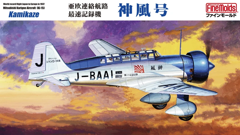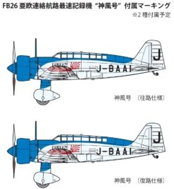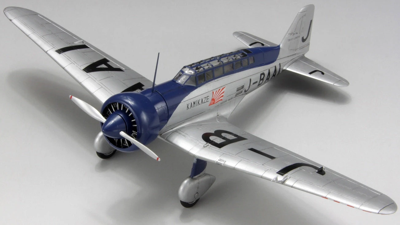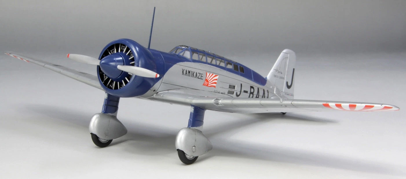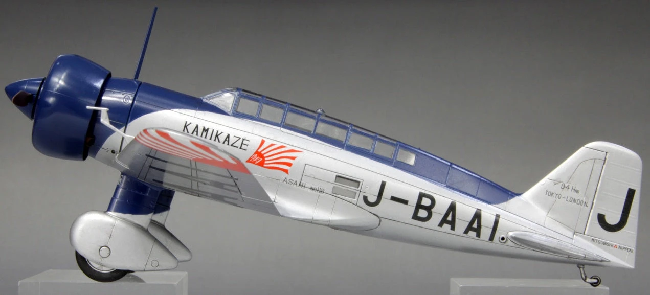 The Asahi Shimbun newspaper sponsored a high-speed record flight attempt in 1937, on the route from Japan to London (even though that was not an established air route at the time). Dubbed the “Kamikaze,” this aircraft left Tachikawa on April 6, 1937, and arrived in London on April 9, 94 hours and 17 minutes later, establishing a new world’s record. This kit includes decals for the Kamikaze’s markings. Order yours today!