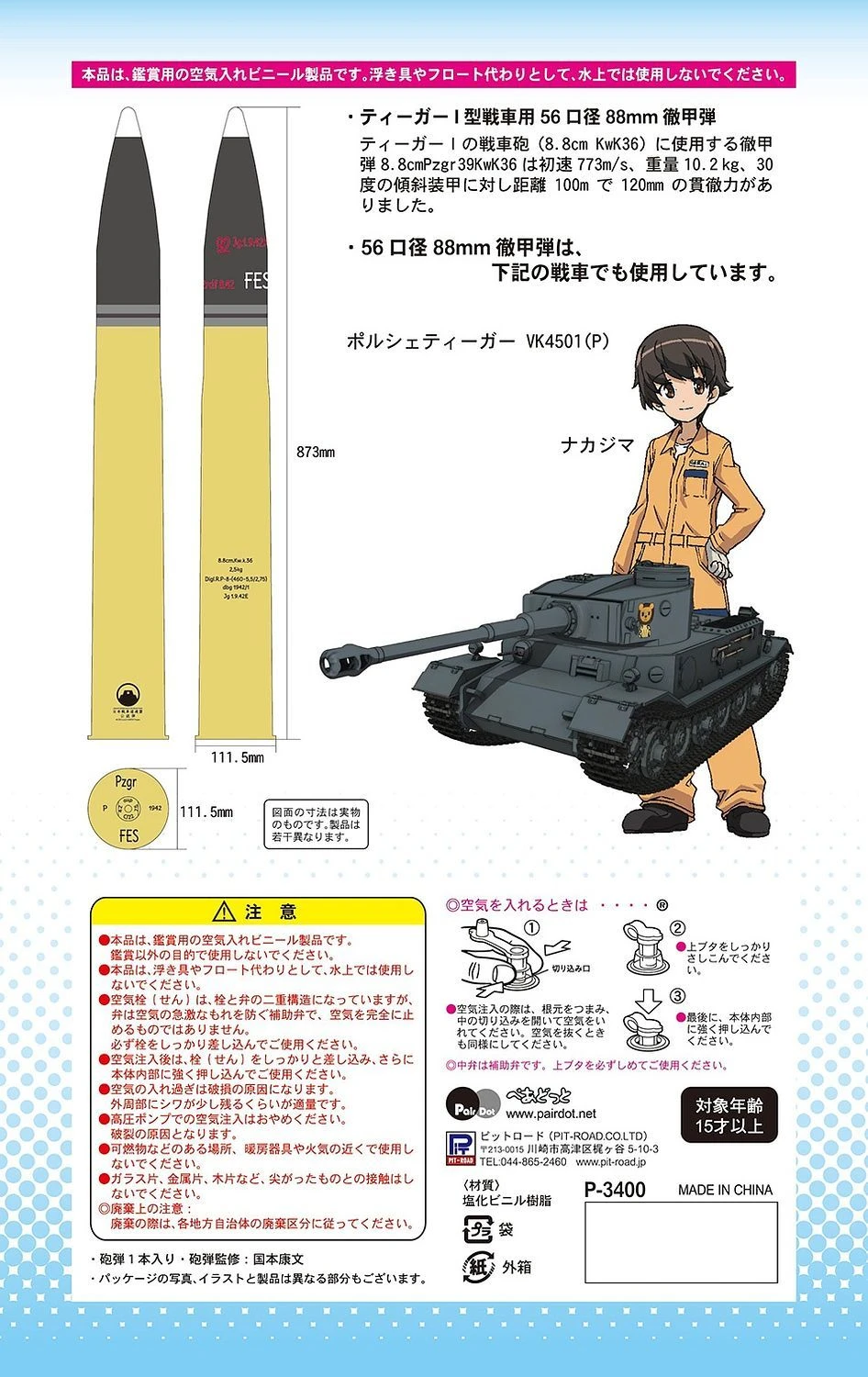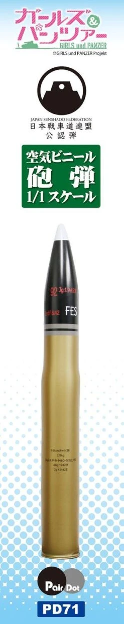 VINYL INFLATABLE full scale replica of a German 88/L56 tank round form the series Girls und Panzer – 34 3/8″ tall. Fully decorated.