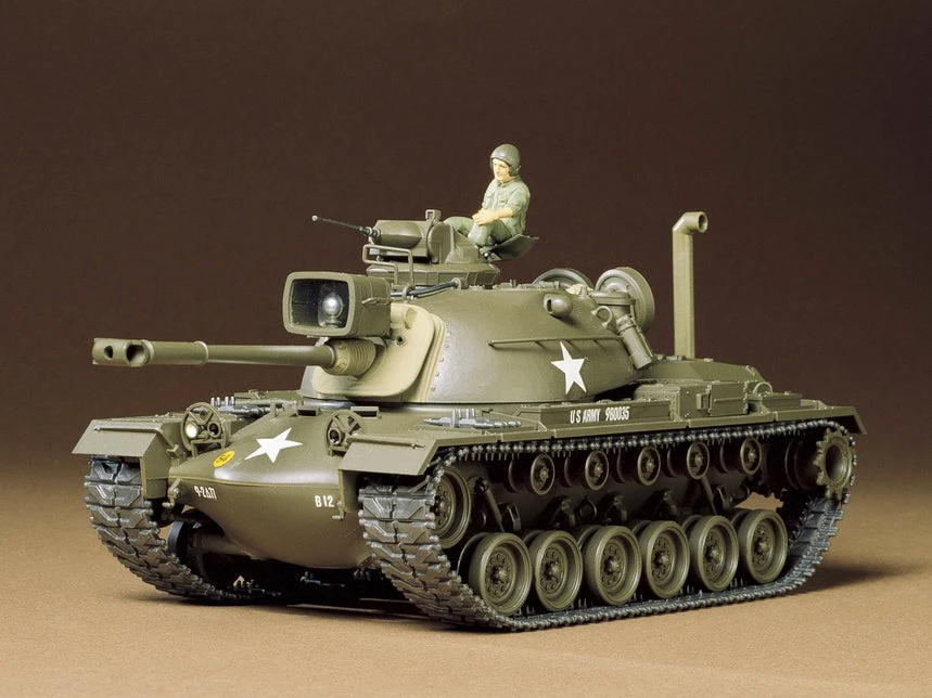 Design of the M48 series of medium tanks commenced in October 1950, with the Chrysler Corporation commissioned to do the design work and provide six prototypes. Due to the Korean war, production of the M48 was authorized prior to the completion of any prototype or testing. Ford and General Motors were awarded production contracts, in addition to Chrysler, and the first M48 was delivered in early 1953. Numerous technical problems with the new tank delayed its deployment in significant numbers until 1958. There are numerous variations and modifications of the M48 in existence all over the world today, and this kit depicts an M48A3 “Patton” as it appeared during the Vietnam conflict when employed by the U.S. Forces. Using a cast elliptical hull which has high structural rigidity and excellent ballistic protection, this 47.5 ton tank has proven its worth in the field of combat against like opposition. The major improvement of the M48 over the M47 was the superior shape of the “Turtleback” cast steel turret, which provided a greater internal volume and much better ballistic protection. Armed with a 90mm M41 gun and on 7.62 coaxial machine gun and a 12.7 machine gun in the commanders cupola, and powered by a Continental V-12 AV-1790 petrol engine of 865 hp, this fine tank has a top road speed of 48 km/h. It is crewed by a Commander, Gunner, Radio operator/loader and a driver. The M48 series of medium tanks is or has been used by a great number of nations around the world, and is expected to remain a first line battle tank for many years to come.