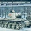 The StuG III Ausf. G was the workhorse of the German mechanized anti-tank forces in late WWII. Tamiya’s 1/48 scale kit of the early version of the Ausf. G includes a die-cast chassis and link-and-length injection-molded tracks. Kit also contains the parts for the schurzen (anti-bazooka) plate and its attachment points and your choice of 75mm anti-tank or 105mm Howitzer main guns. Includes a commander figure (half-bodied) in a winter uniform and markings for three vehicles.
